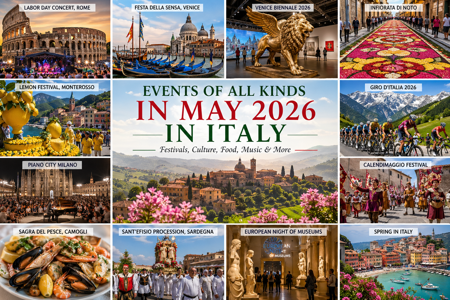 May 2026 in Italy offer something for everyone. From world-class art exhibitions and historic festivals to food fairs and sporting events, Italy becomes a vibrant stage of culture and celebration. Whether you’re exploring bustling cities or charming villages, May is truly one of the best times to experience the country’s rich traditions and modern creativity.