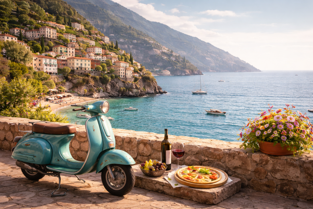 Exploring Amalfi Coast – Drive along scenic cliffs and visit charming towns.