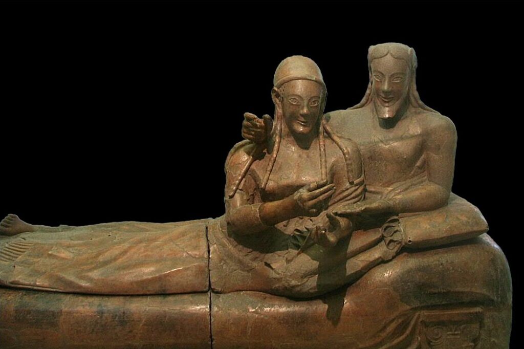 Etruscan society was advanced, with organized cities, powerful rulers (lucumones), and a social structure that included influential women — far more visible in public life than in many contemporary societies. Their language, written in an alphabet derived from Greek, survives in inscriptions but remains only partially understood.